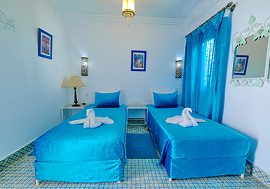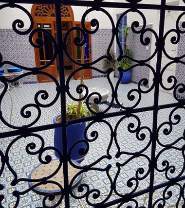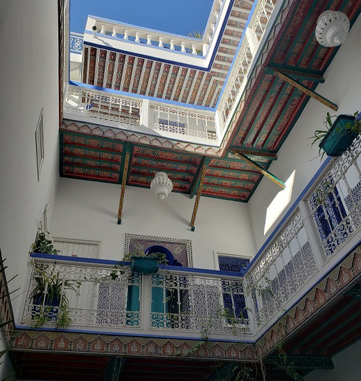 Ce Riad porte le nom d'ESSAOUIRA faisant référence à la charmante ville d'ESSAOUIRA . Il est peint en bleu et blanc . C'est dans cette idée et cet esprit qu'il a été conçu est pensé par ses propriétaires . Non loin de la trépidante place Jemâa El Fna et des Palais Bahia et Badi, il fait partie de cet unique et authentique patrimoine de la médina de Marrakech et quoique en plein centre, il est facile d’accès.
